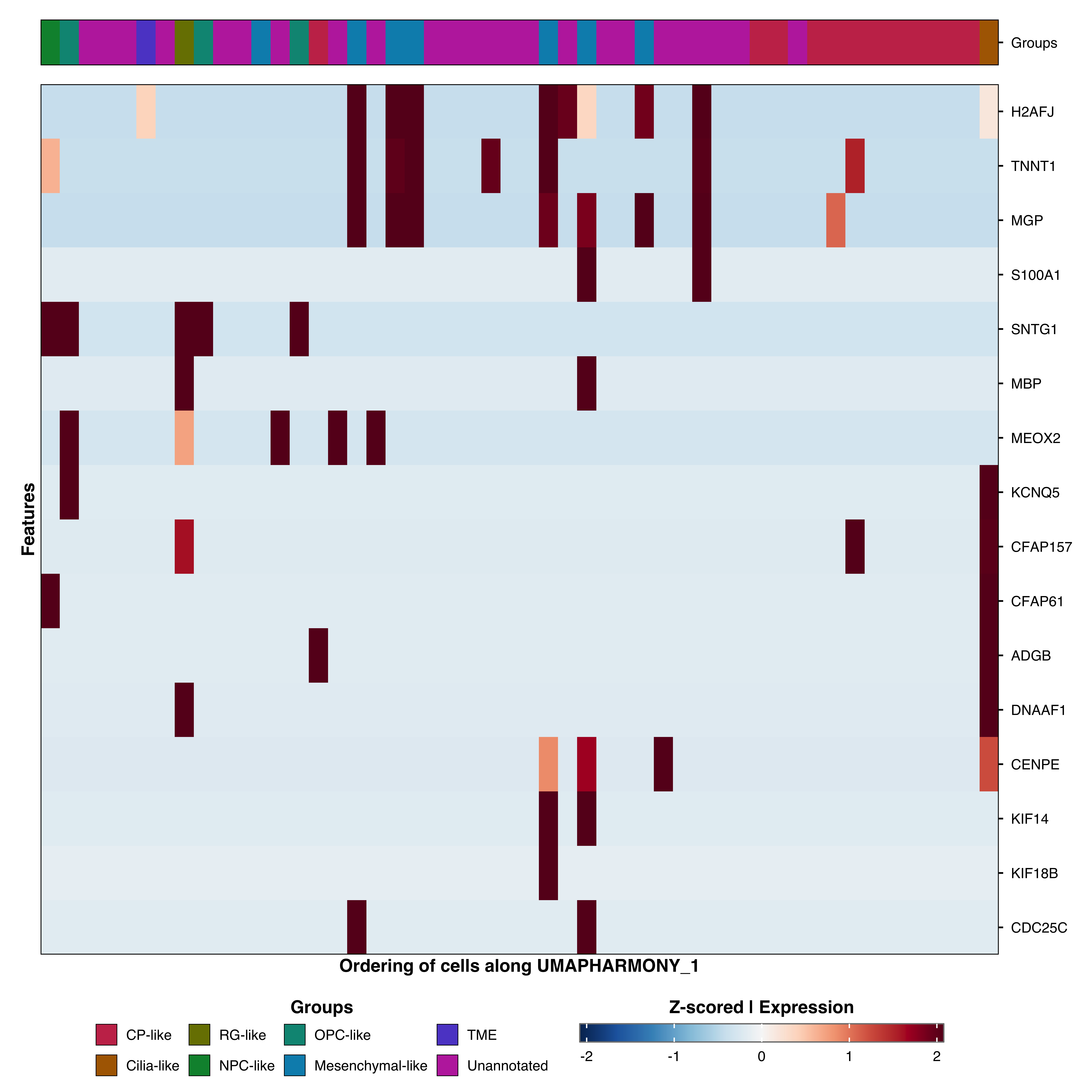 p <- SCpubr :: do_RankedExpressionHeatmap ( sample = sample ,