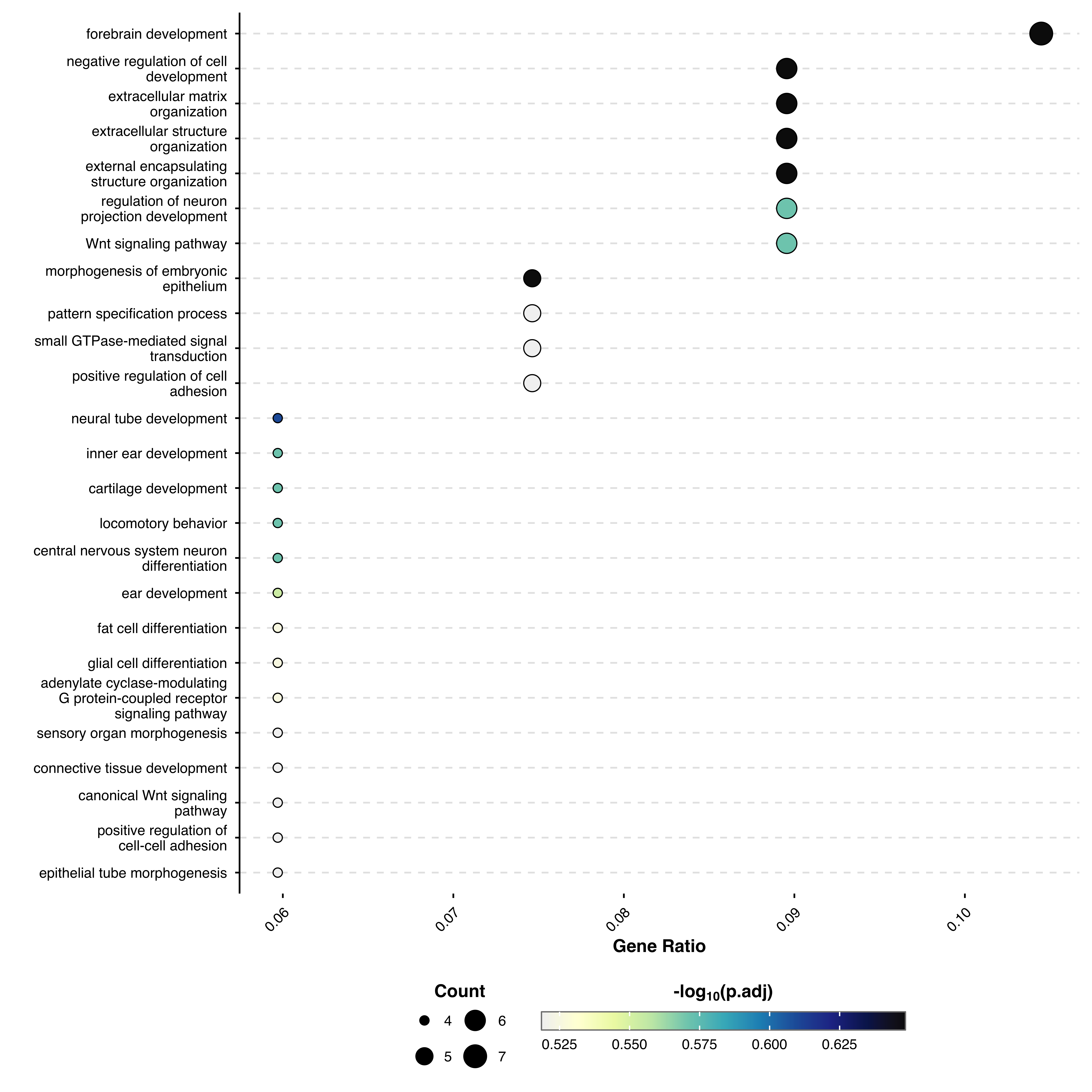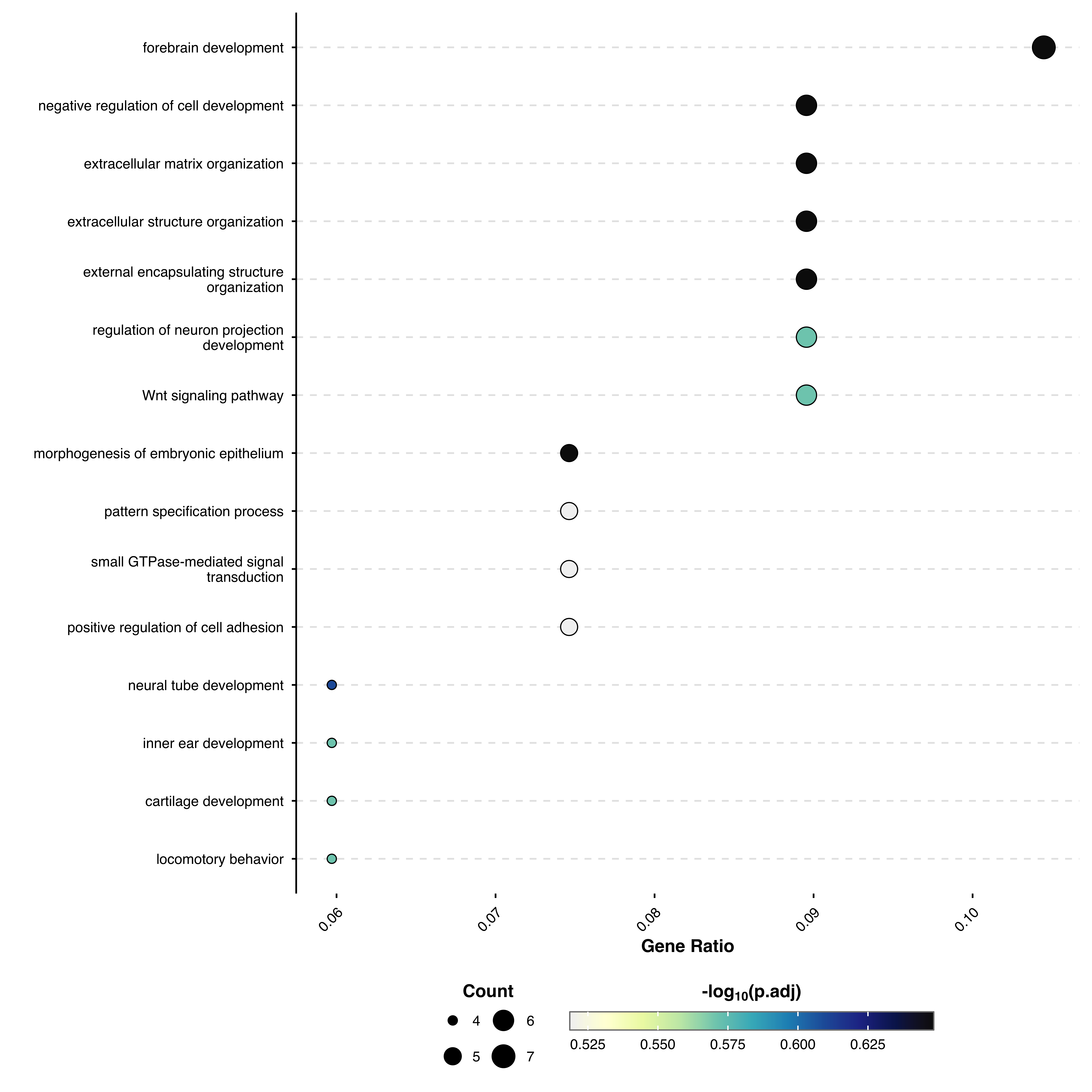 This function visualizes enriched GO terms or pathways from over-representation analysis (e.g., using clusterProfiler). Displays terms as a dot plot with gene count and p-values.